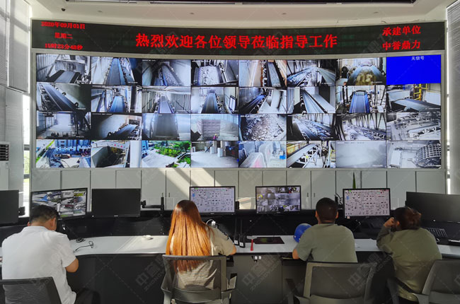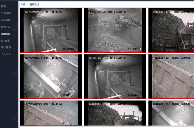 我公司矿山砂石生产线视频监控系统采用360度高清摄像头+30倍光学变焦+互联网,通过中控大屏实时远程监视整条砂石生产线的运转情况。