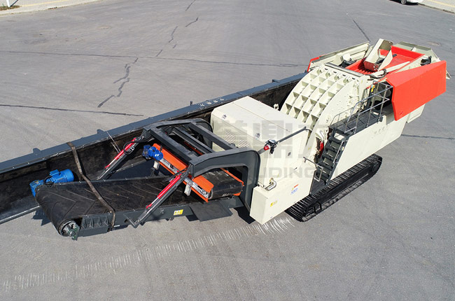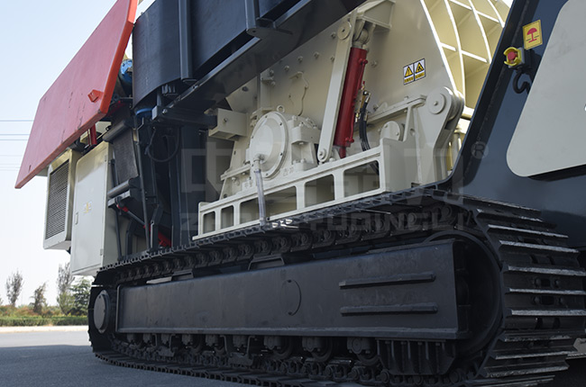 履带式移动破石机:履带底盘机架,会对路面造成损坏,不适合长距离运输,但履带抓地力强,可以爬坡,能适应各种复杂、恶劣的环境。可用于矿石、尾矿的破碎。