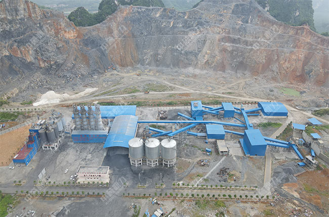 该项目是广西登高新材料公司投资的大型砂石骨料项目,由河南中誉鼎力智能装备有限公司承建,于2019年正式投入生产,年产量可达200万吨,主要生产各类规格的砂石料。